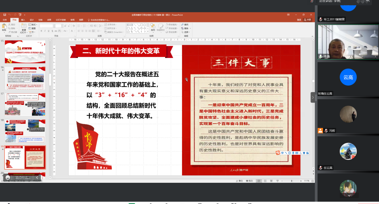 12月7日下午,公司党委常委、副董事长李勇为今年会环工20级员工党员和入党积极分子开展党的二十大精神主题宣讲。