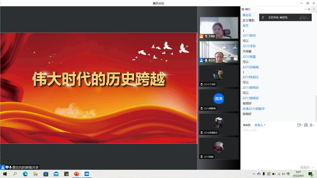 费忠民书记以《伟大时代的历史跨越》为主题,从新时代有新作为新成就开始讲起,向同学们讲述了近些年来我国在经济、民主政治、文化、人民生活和美丽中国的进步和变化,通过讲解习近平总书记提出“五个必由之路”和“五个战略性有利条件”的重大论断,展示了中国发展的光明前景。