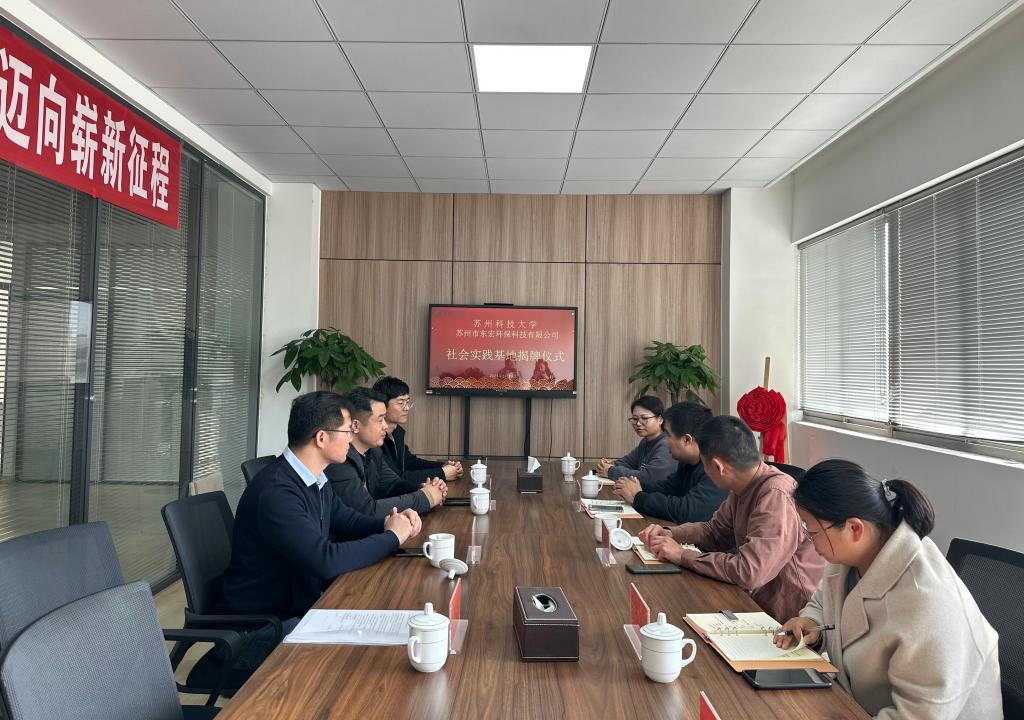 苏州市东宏环保科技有限公司总经理吴晓东、顾问部经理赵兵、咨询部经理方云等共同出席了此次仪式。任云高介绍了公司学科、专业建设以及人才培养等方面的情况,着重说明了22届毕业生目前的就业状况。吴晓东介绍了公司业务版块以及对人才的需求状况。双方表达了深入校企合作的意愿,希望在社会实践、就业实训等方面开展进一步合作。