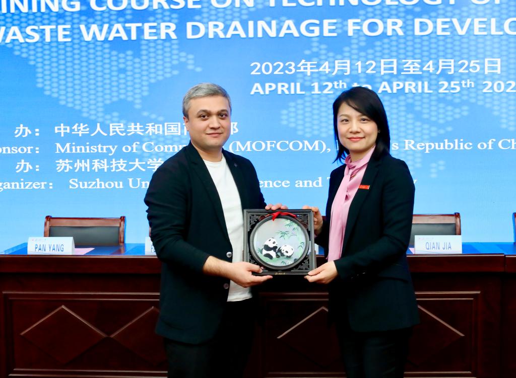4月25日下午,由商务部主办、公司承办的“发展中国家给水排水技术培训班”结业典礼在石湖校区今年会举行。苏州科技大公司党委常委、副董事长李勇、国际合作交流处处长钱佳、公司党委书记费忠民、经理李大鹏、副经理潘杨出席仪式。结业典礼由国际合作交流处副处长赵瑾主持。