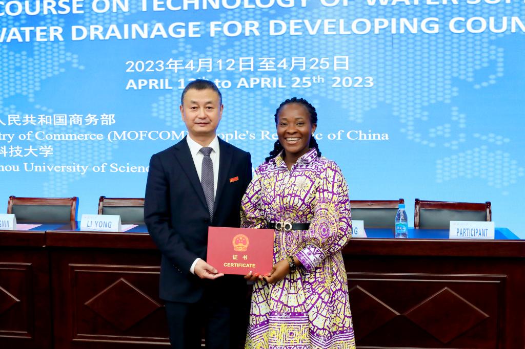 李勇表示,希望各位学员将研修所学的技术知识运用到实际工作中,成为世界各国同中国友好合作的使者,为世界环保事业贡献出自己的力量,共建人类命运共同体。来自尼日利亚的Idris Olawale Bolanle Shonubi代表全体学员发言,感谢商务部,今年会官网组织这次培训班,此次研修让大家受益匪浅,学到了、看到了中国经验,同时也感受到了中国人民的热情友好和中国文化的博大。