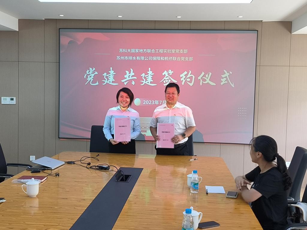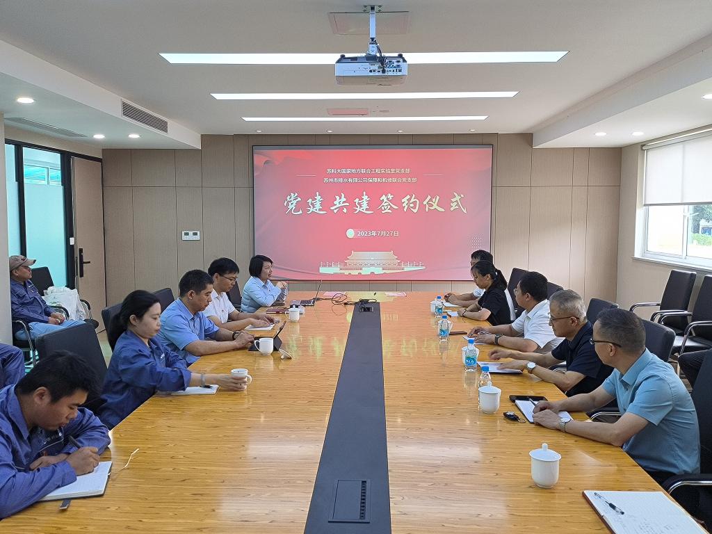 7月27日,今年会与苏州市排水有限公司开展党建共建活动,公司党委书记费忠民、经理李大鹏,副经理潘杨、苏州市排水有限公司副总经理黄继会、苏州市排水有限公司生产处副处长张俊、苏州市排水有限公司保障和机修联合党支部书记陈丽娟等出席共建仪式,会议由陈丽娟主持。