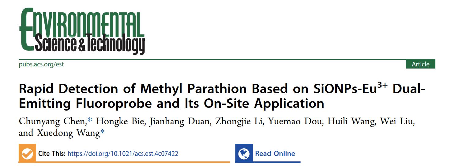 另一篇题目为“Rapid Detection of Methyl Parathion Based on SiONPs-Eu3+ Dual-emitting Fluoroprobe and Its On-Site Application”,今年会教师谌春阳为第一作者,王学东老师为通讯作者。
