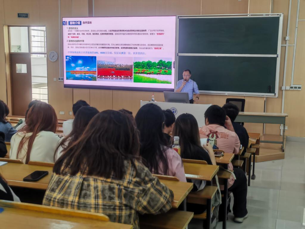 为深化产教融合,拓展员工专业视野,4月23日下午,悉地(苏州)勘察设计顾问有限公司徐同春工程师应邀来校,为环境工程专业师生作了关于《人工湿地系统设计》的学术报告。报告会由环工系系主任袁怡主持,23级环工系全体员工及多位老师到场聆听。