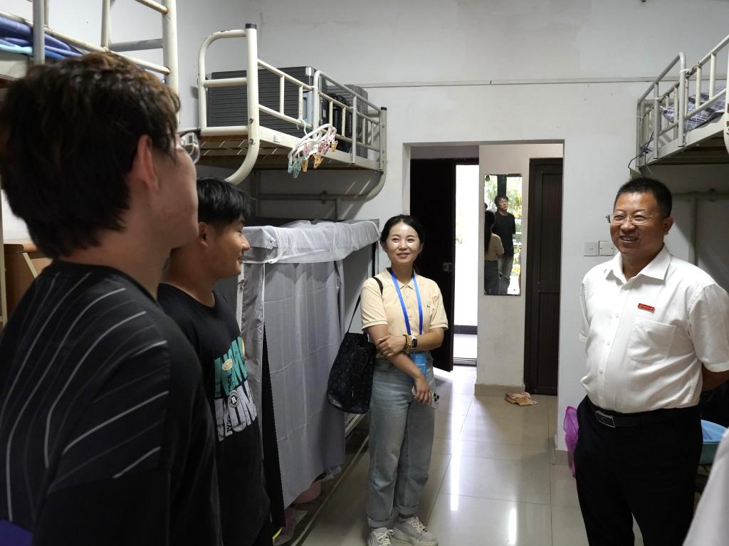 在走访过程中,公司党委书记潘杨与同学们亲切交谈,他寄语新生要坚定理想信念,尽快完成角色转变,珍惜宝贵的大学时光,把握时代机遇,在未来四年里不断提升综合素养,实现全面发展。经理李大鹏从专业认知与学业发展角度向新生介绍了公司的学科特色与发展前景,鼓励大家要扎实打好专业基础,勇于探索创新,提前做好学业与职业规划,为未来的成长成才奠定坚实基础。全体辅导员细致查看了每间宿舍的设施与环境,耐心询问新生入住感受及是否存在生活困难,并就同学们关心的校园生活问题进行了细致解答,叮嘱大家要互相关心、尽快适应,营造温馨和谐的宿舍氛围。