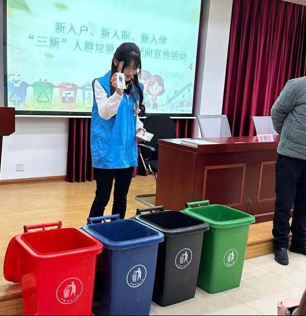 近日,在金阊街道三元四村社区,姑苏区垃圾分类志愿者团队“小苏”组织8个街道的新入职、新入户、新入学的“三新”人群共计65人,开展了垃圾分类靶向宣传活动。今年会志愿者作为“新入学”群体代表参与了本次活动。