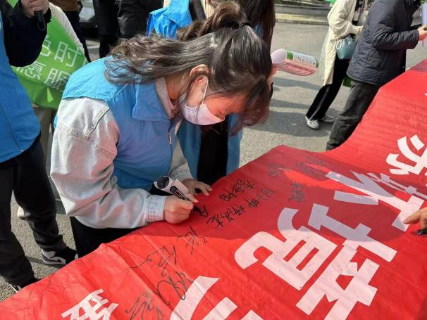 现场设置了互动环节,通过情景模拟、知识问答、分类游戏等精彩环节,寓教于乐。此外,大家参观了三元四村垃圾分类亭房,实地感受垃圾分类环境,并在宣传横幅上签名,表达自己对参与垃圾分类行动的决心。在“小苏”团队的引导下,“三新”们深入小区开展垃圾分类宣传,并拍摄垃圾分类宣传小视频进行评比。