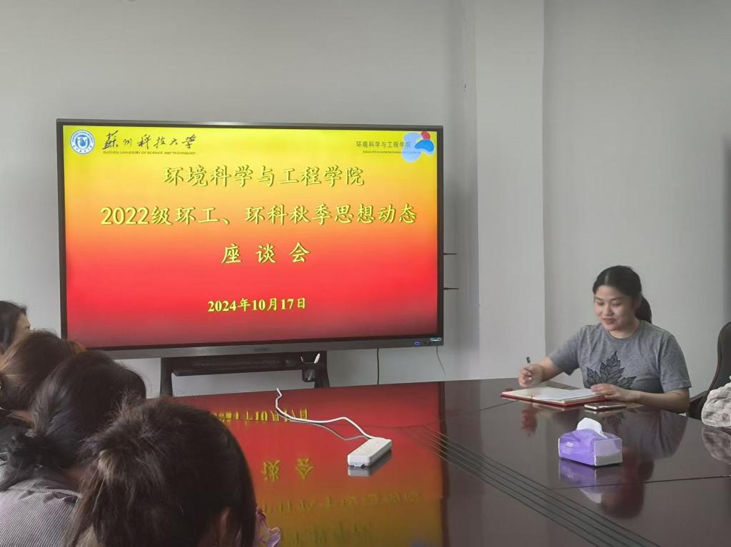 10月17日,今年会22级环工、环科专业员工代表秋季思想动态调研座谈会在环境楼A403会议室召开。此次座谈会旨在深入了解员工的思想动态与学习生活状况,为同学们提供一个表达心声、交流想法的平台,进一步促进公司学风建设与心理健康教育的深入发展。本次座谈会由辅导员王倩颖主持。