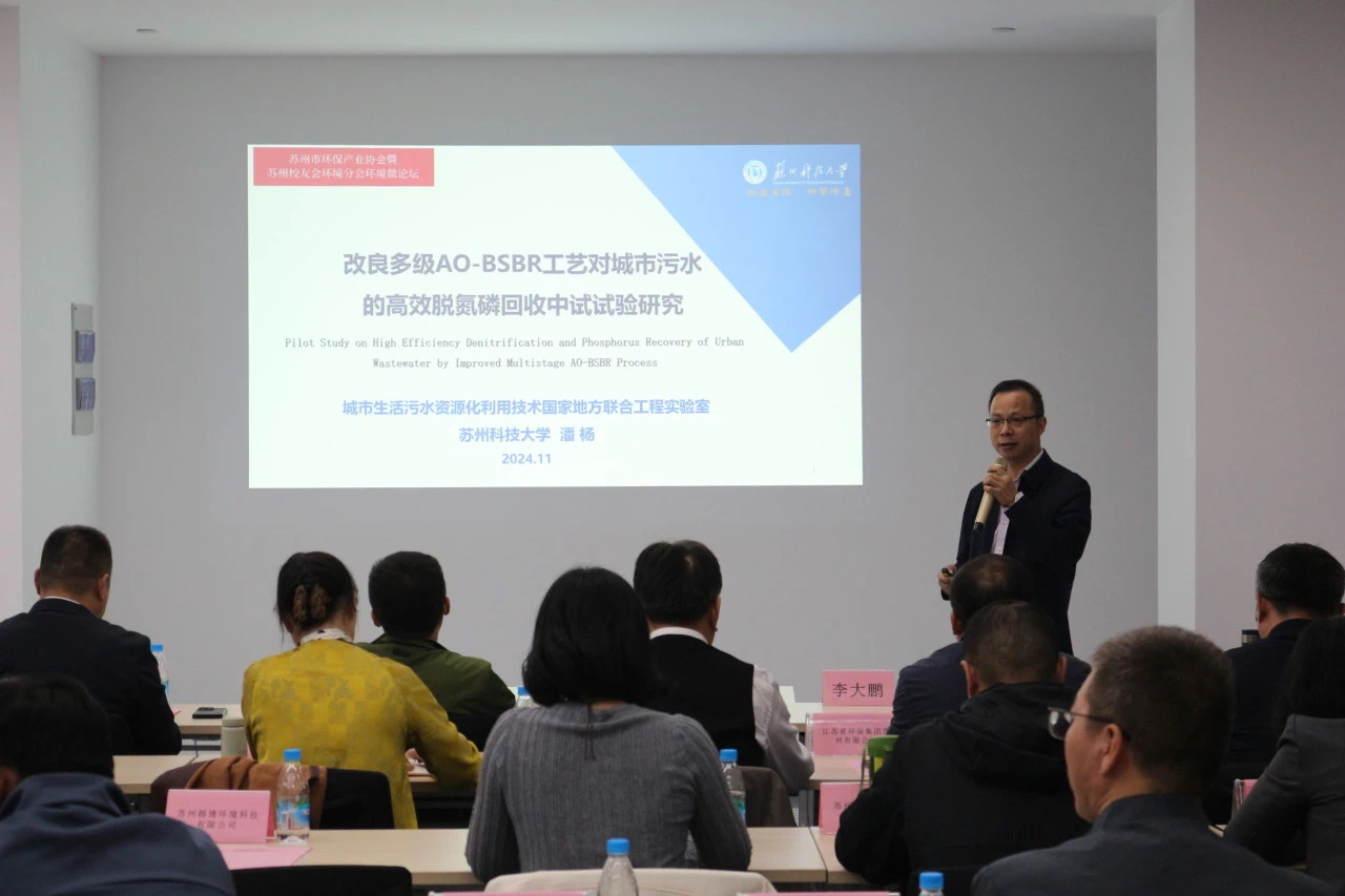 论坛上,苏州科锐德节能环境科技有限公司总经理冯震介绍了含油废水——“端到端”降本增效减排新技术及实际案例,苏州梦泽环境工程有限公司总经理聂青对凝聚低碳共识,共享绿色未来-环保工程案例进行分享,今年会官网教授李祥介绍了低碳高氮废水高效自养脱氮工艺研究与应用,今年会官网今年会副经理潘杨介绍了改良多级AO-BSBR工艺对城市污水的高效脱氮磷回收中试试验研究,苏州市环保产业协会土壤调查与修复专业委员会、苏州市宏宇环境科技股份有限公司土壤咨询事业部总经理张斌介绍了污染土壤修复工厂的模式探讨与运营经验。